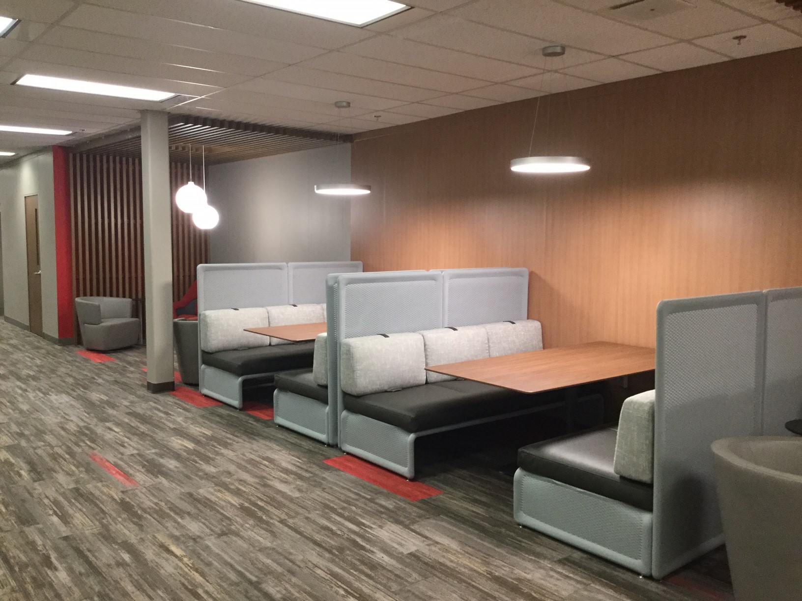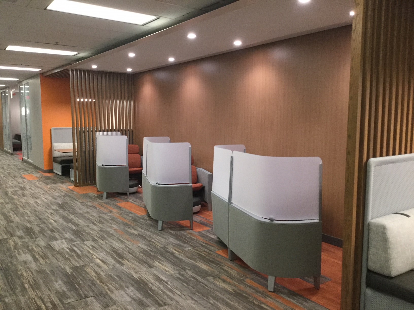 In addition to the finishes, modifications to the executive office suite were made including the addition of new offices and conference rooms. Four new secured revolving door entrances were also included in the scope of work. We completed the renovation of the entrance lobby and corridor spaces with new lighting, HVAC upgrades, finish upgrades, a new security desk and new signage.