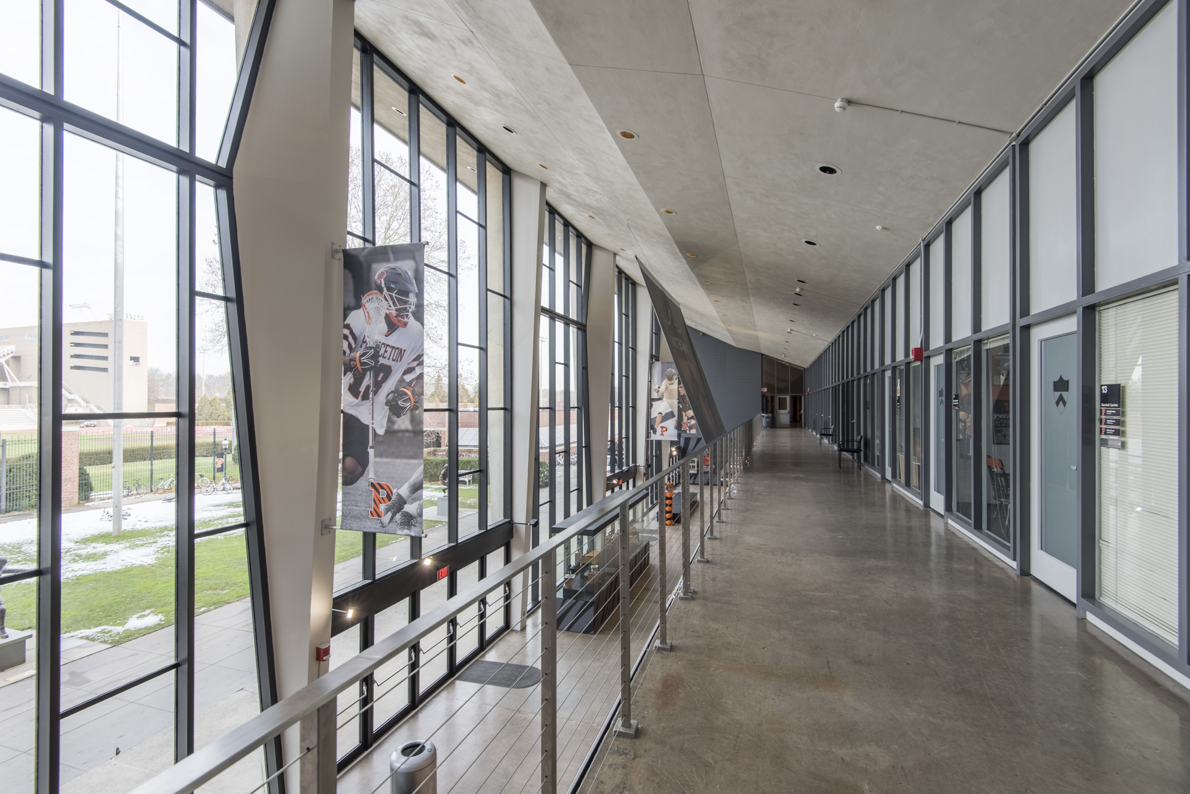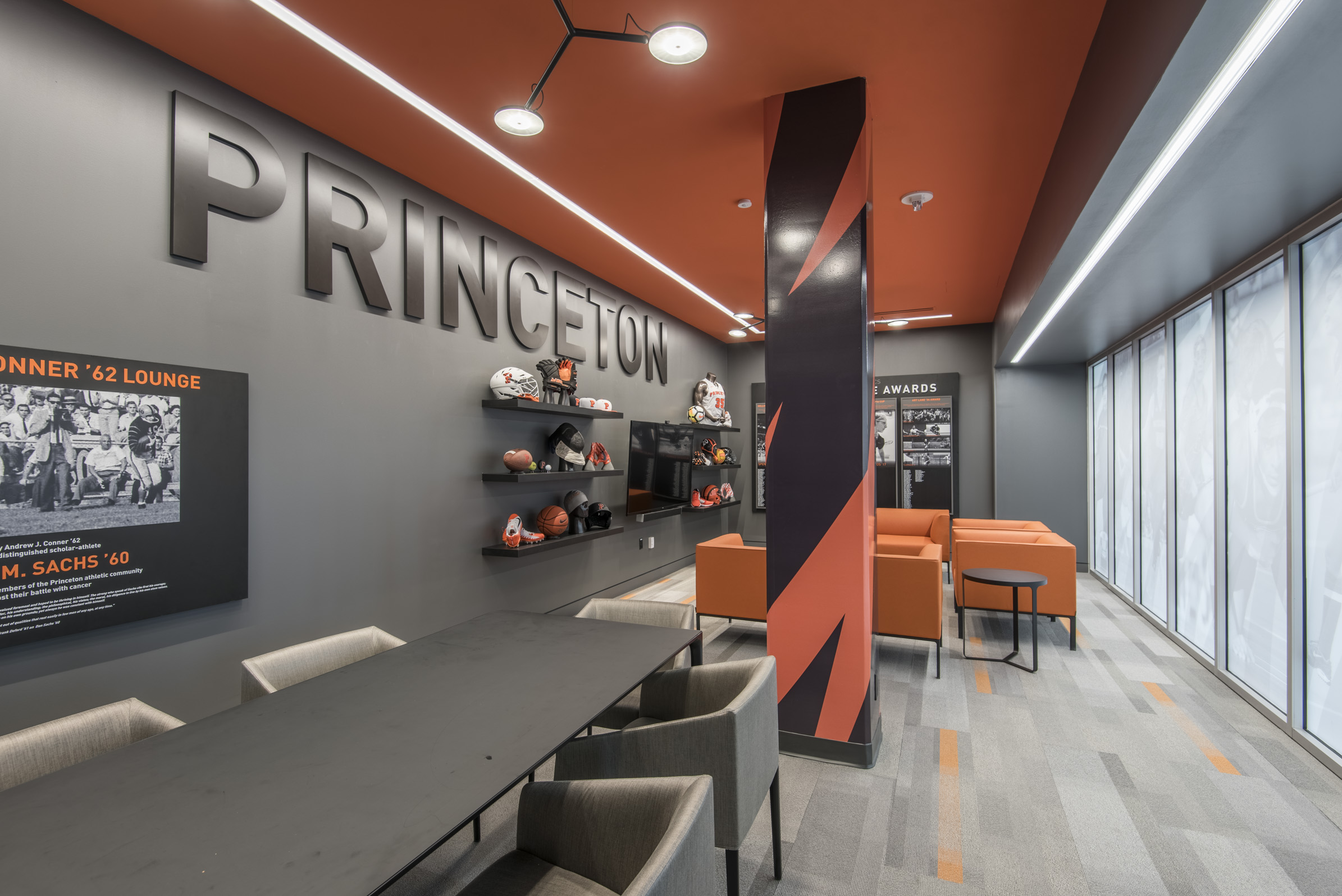 The revitalized concourse includes graphics and displays throughout that celebrate both Princeton’s athletic history and current student athletes. The recruiting area consists of the newly constructed Connor Lounge, which serves as a meeting space for Princeton coaches, athletes, recruits, and their families.