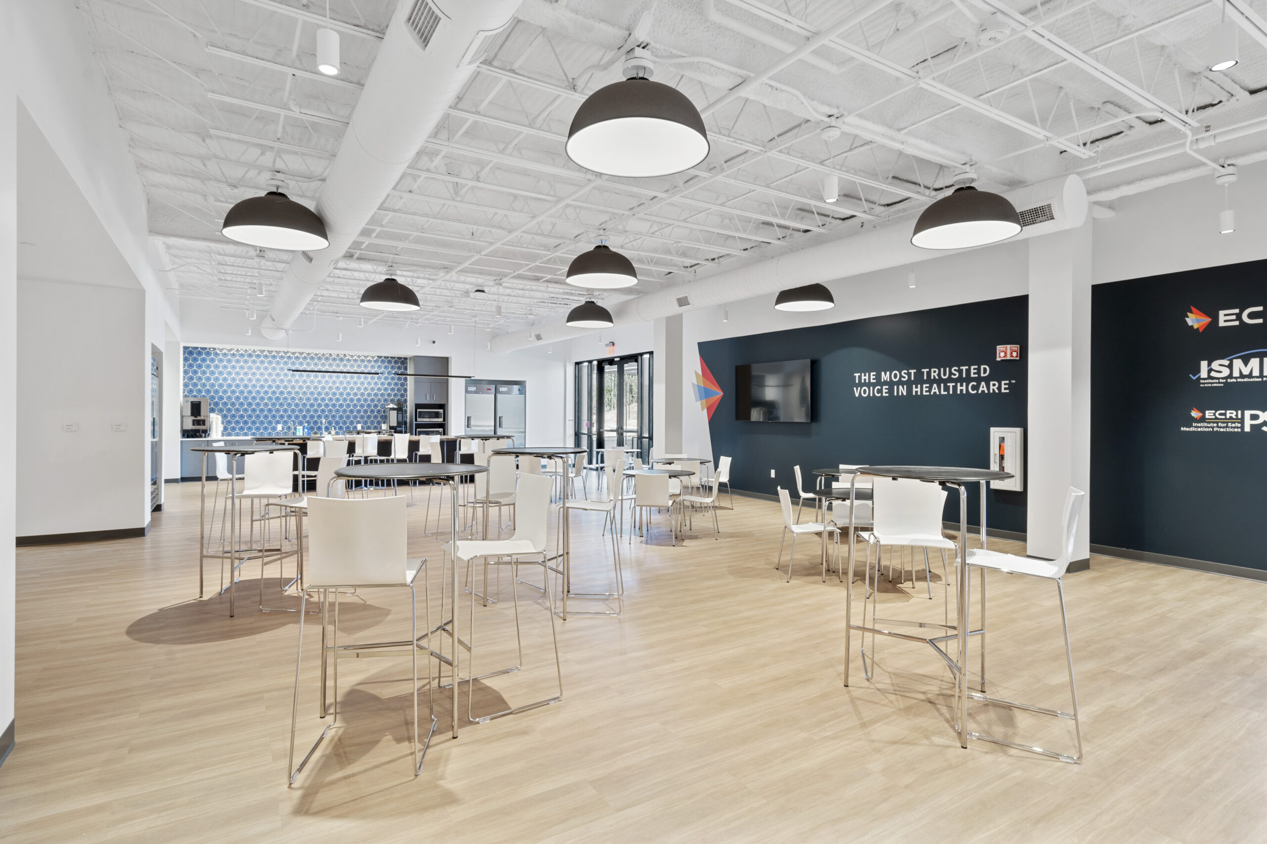 Irwin & Leighton was honored to be chosen by the Emergency Care Research Institute (ECRI) as the Design-Builder for the transformation of its main headquarters in Plymouth Meeting, PA. In response to significant global shifts, the project adapted to meet the evolving needs of ECRI post-pandemic, resulting in a dynamic and efficient workspace. Central to the redesign was the demolition of the outdated single-story section of the building, making way for a striking three-story grand entrance and the complete fit-out of the first and second floors. Our comprehensive involvement spanned every stage of the project, from initial design conceptualization to the final installation of furniture and audiovisual systems, ensuring a seamless and integrated approach to revitalizing ECRI's headquarters.