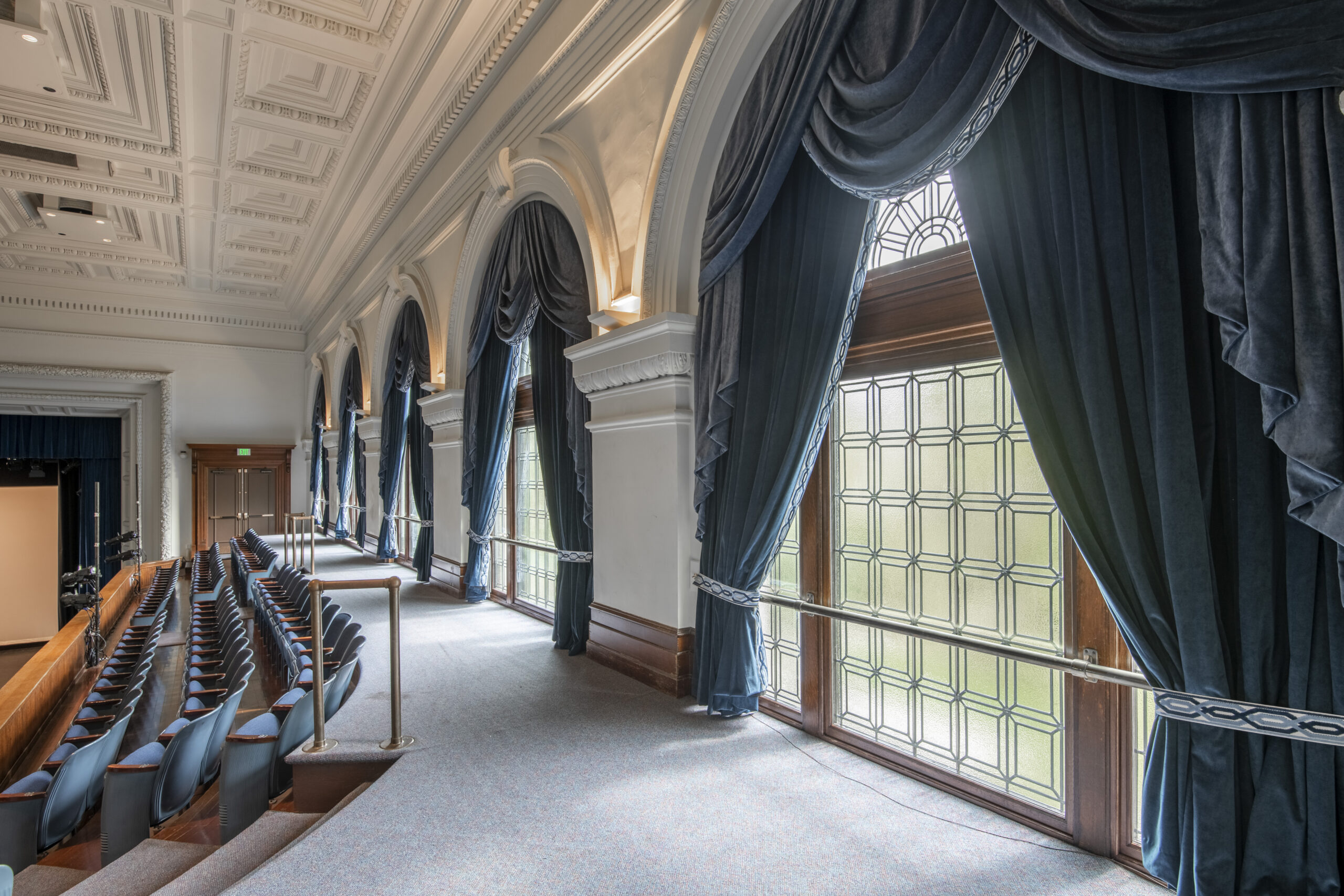 Irwin & Leighton had the privilege of being selected as the Construction Manager for the prestigious renovation of the iconic Schwab Auditorium, nestled in the heart of Penn State's Main Campus in State College, PA. The project's focal points encompassed a meticulous restoration of the auditorium's historic fenestration, comprising the delicate revitalization of wood windows and glass elements. Our scope of work extended to encompass abatement procedures, precision painting applications, and modern updates to window treatments, ensuring that the architectural integrity and timeless charm of this revered landmark were meticulously preserved.