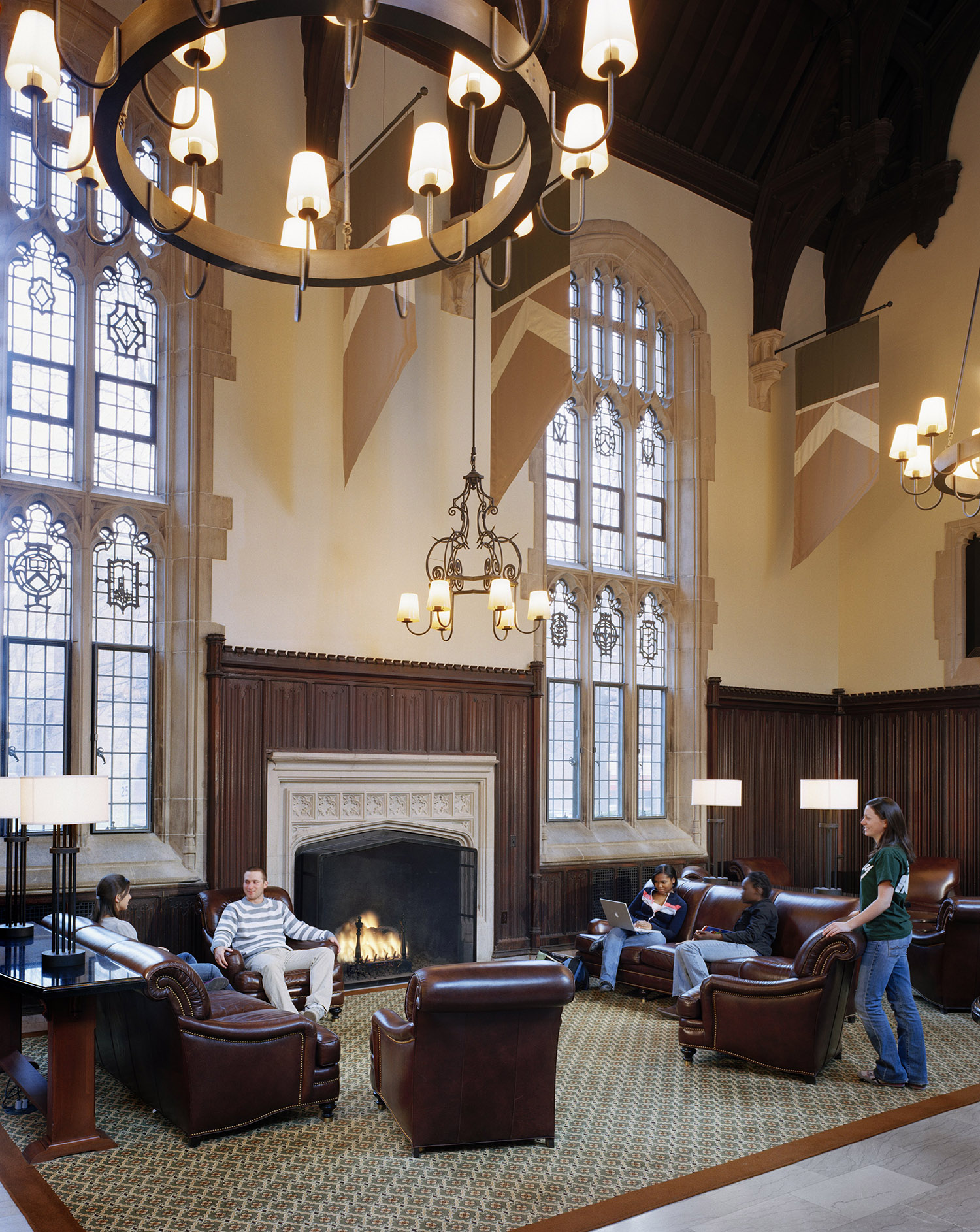 The Holder Hall dormitory was built in the northwest corner of Princeton’s campus between 1909 and 1910; the Tower was completed in 1911. Hamilton Hall, a smaller dormitory, was completed in 1913 and connected to the Holder courtyard by an archway through a stone cloister. To provide dining facilities for these two historic buildings, Madison Hall was built in 1917. Over a span of three years, Irwin & Leighton renovated all three buildings and the Tower in overlapping phases, one phase for each building and a fourth for the Tower restoration.