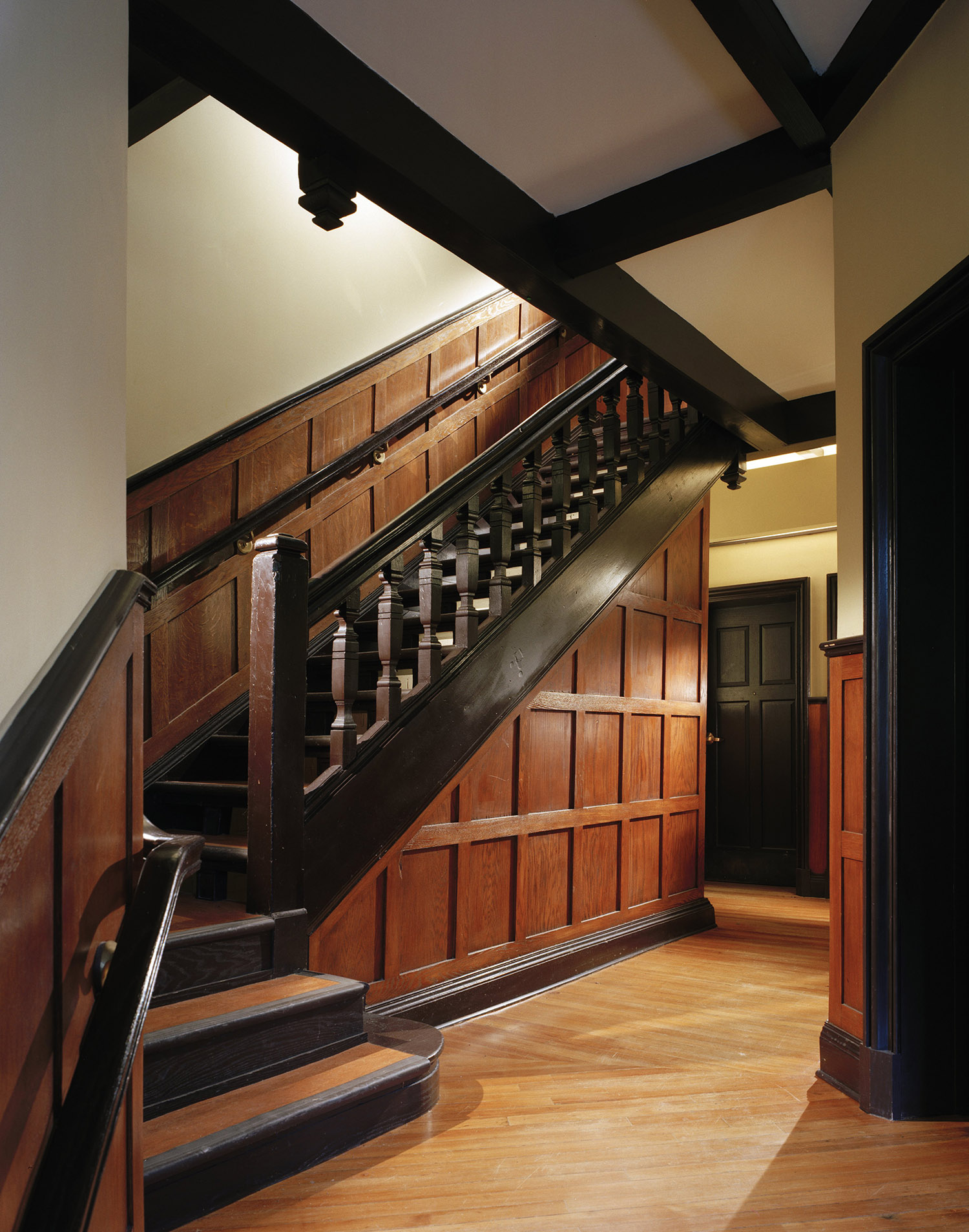 The scope for the complete interior renovation of Holder Hall involved lowering the basement elevation to accommodate new common spaces and offices, all new windows, new mechanical, electrical and fire protection services as well as selective reroofing and exterior restoration.